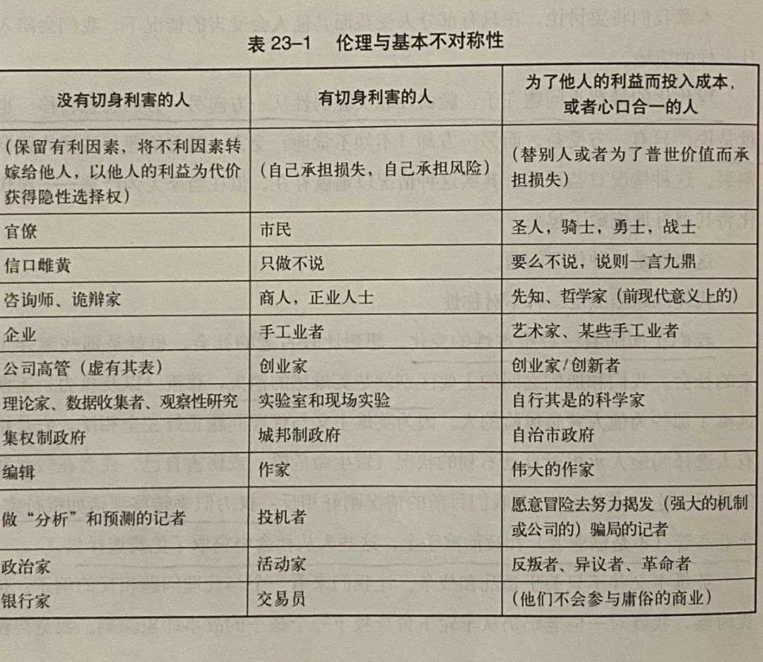 塔勒布第一卷结尾称,我们需要把创业者和风险承担着置于金字塔的顶端,而不管他们“失败”与否,除非他们在承担个人风险时还将他人置于风险之中;学者、空谈者和政客都应该被置于金字塔的底端。