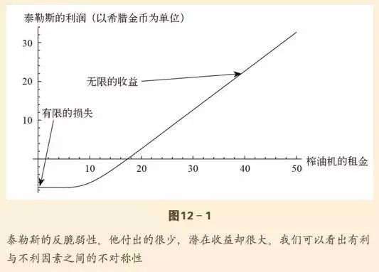 书中的一些例子:对于一个脆弱的生物体,一块巨石产生的伤害要远大于1000块小石子;对于一个脆弱的经济体,某个经济变量的上升将导致巨大的损失,而其下降则只能带来少量的利润;对于一个脆弱的公司而言,营业额增加10%带来的利润增加额,低于营业额下降10%带来的利润减少额。