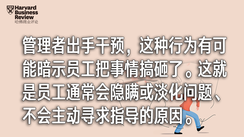 即便时机合适,但若你插手的原因不够明确,干预还是有可能造成负面影响。管理者会发挥许多不同的作用,其职责包括评估员工表现以及给予奖惩。这一职权方面的互动可能影响帮忙的效果。管理者出手干预,这种行为有可能暗示着员工把事情搞砸了。这就是员工通常会隐瞒或淡化问题、不会主动寻求指导的原因。面对帮助,他们可能会不愿接受、有所防备或意志消沉,影响创造力和绩效表现。因此,一名管理者告诉我们,管理者必须小心行事,“不要让自己的介入制造出太多焦虑,让自己处于更糟糕的境地……情况有可能会变成‘老板来了,天啊,他对我们的工作实在是太不满意了’。”